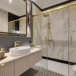 Hier gibt es ein privates Bad mit einer Badewanne, einer getrennten Toilette und einer Dusche. Die Gäste können ihre Freizeit in dieser Unterkunft optimal nutzen, da Medieneinrichtungen wie einen Flachbildfernseher mit Satellitenkanälen zur Verfügung stehen, die für ein angenehmes Freizeiterlebnis sorgen. Das Apartment verfügt über ein Badezimmer mit einem Haartrockner, Toilettenartikeln und Handtüchern.
